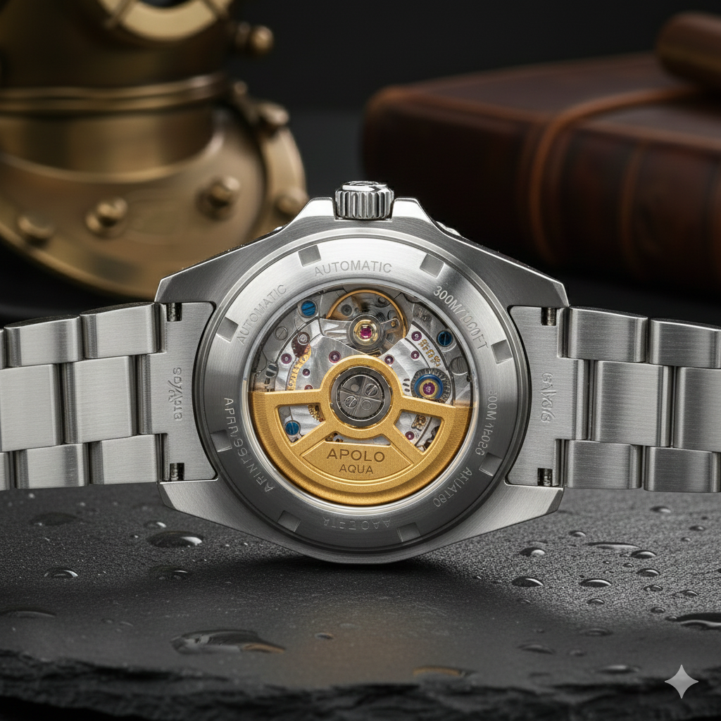 El Apolo Aqua es una inversión en precisión, historia y estilo. Lleva contigo la seguridad del explorador y la distinción del coleccionista.